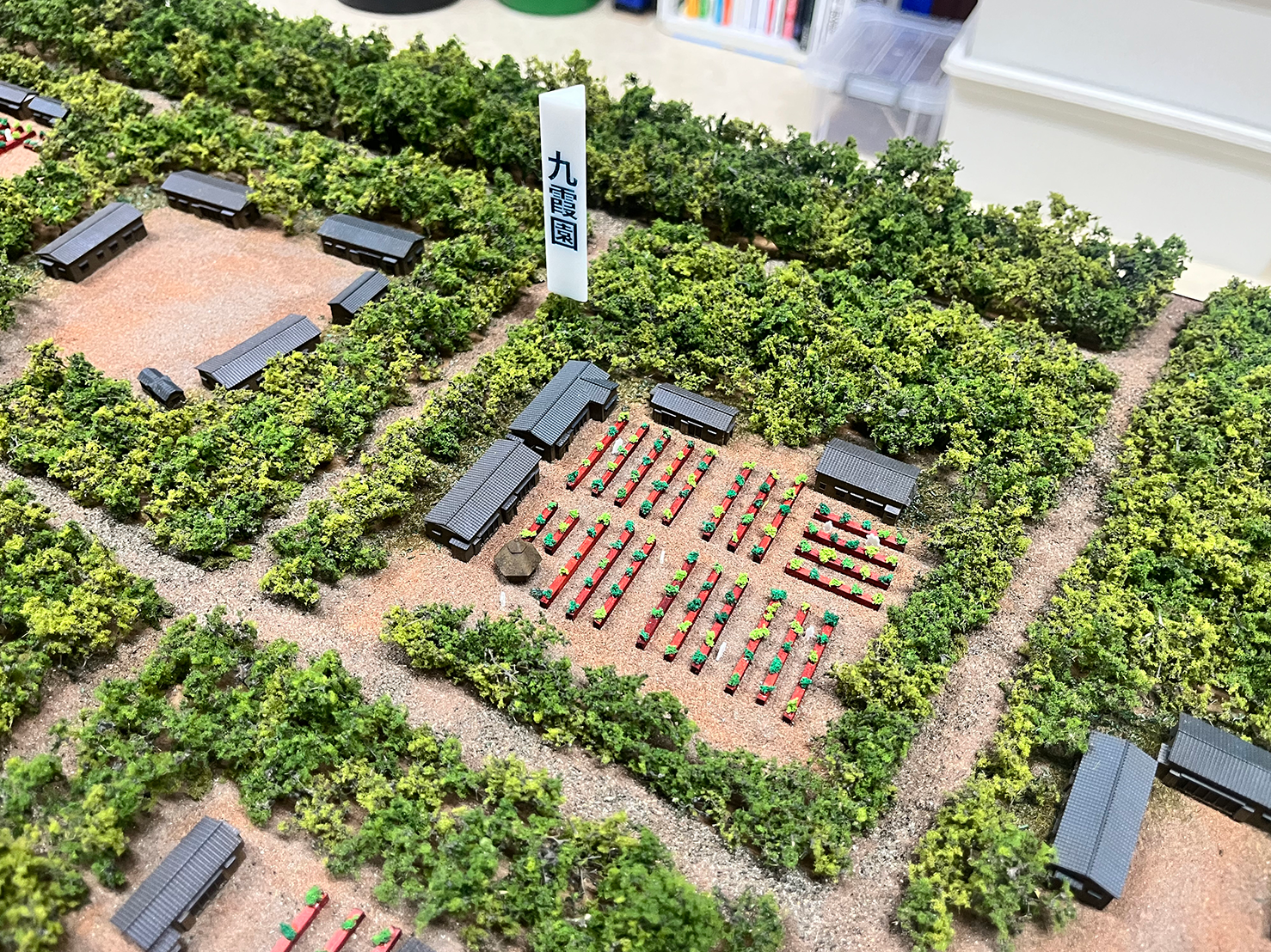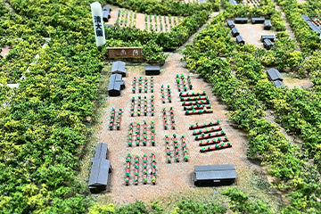 | こだわりポイント: | 資料を元に葉の詳細、道具、服装など当時の風景を忠実に再現しました。また3Dプリンターを使用しており作業する人々の服の柄にまでこだわって作製しております。 |